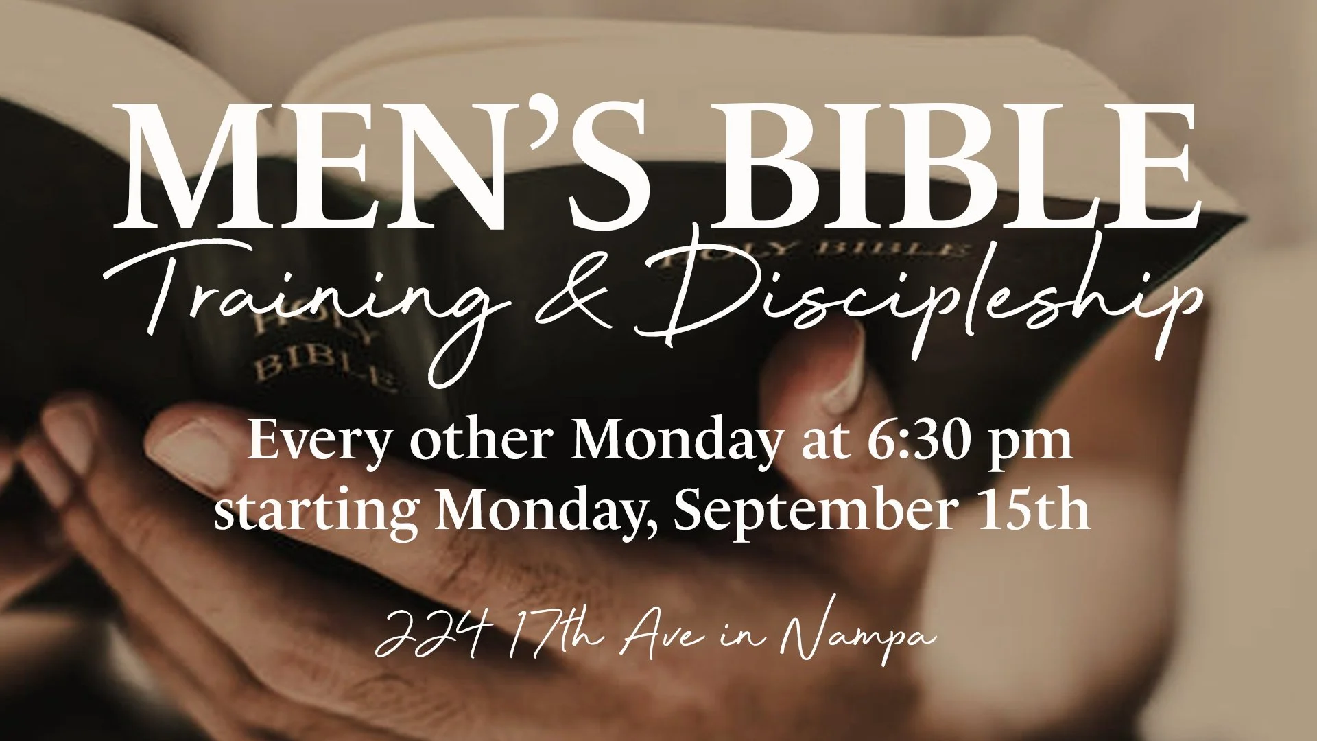 Men's Bible Training & Discipleship Monday, September 29, 2025 6:30 PM 7:30 PM 224 17th Avenue South Nampa, ID, 83651 United States (map) Google Calendar ICS